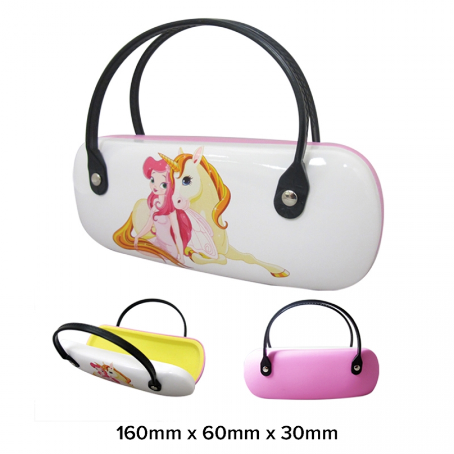 Medium clamshell case with handles - heartsYellow back with purple insert..